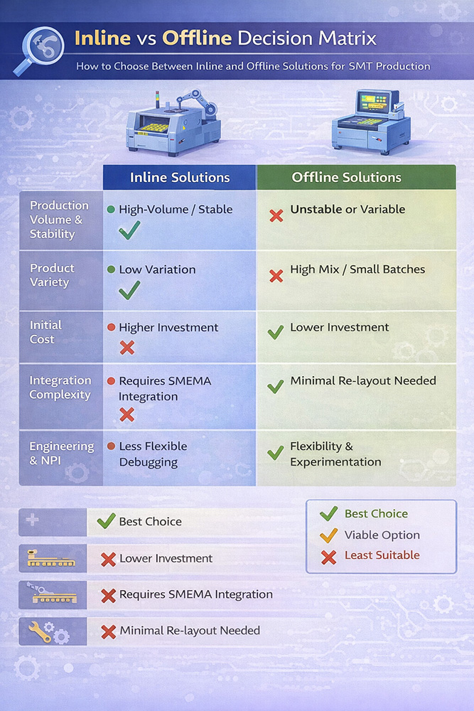 In SMT manufacturing, inline automation is often seen as the ultimate goal. However, experienced engineers know that inline is not always the best answer.