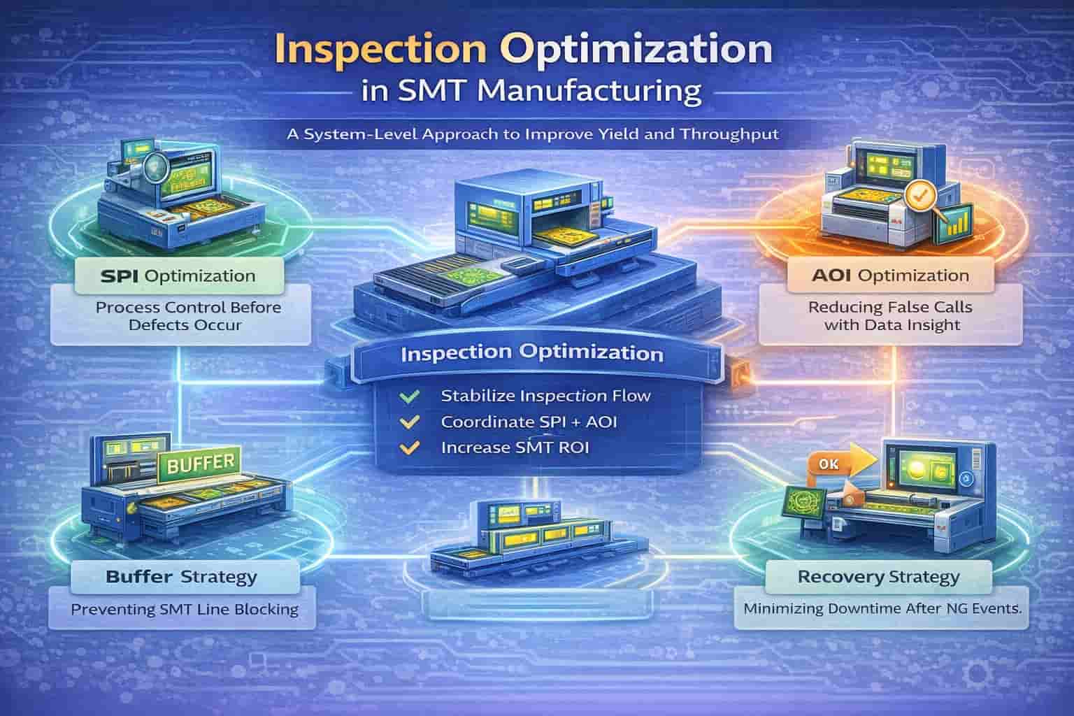 This Inspection Optimization Pillar Page provides a complete, system-level engineering framework covering SPI, AOI, data-driven optimization, buffering, recovery, and ROI impact.